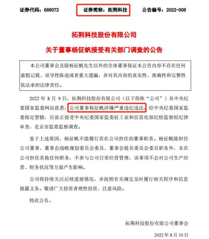 其中80后杨征帆还是多家A股上市公司的董事,目前看来已经有6家公司北方华创、长川科技、万业企业、沪硅产业、拓荆科技、中微公司相继公告,公司董事杨征帆被调查。杨征帆1981年出生,英国布里斯托大学计算机系全球计算与多媒体专业毕业,硕士学历。2004年12月至2007年7月任清华同方威视技术股份有限公司产品开发部软件工程师,2007年7月至2011年11月任职于中国人民银行沈阳分行,2011年11月至2014年12月任开元(北京)城市发展基金管理有限公司高级经理、于2014年12月起历任华芯投资管理有限责任公司高级经理、资深经理、投资三部副总经理。