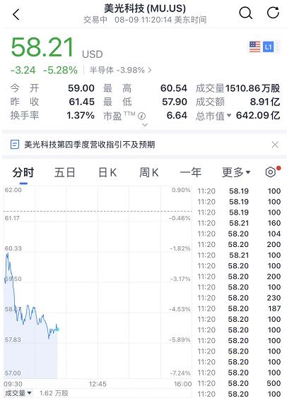 继英伟达后,美光预警未来处境艰难,令芯片板块普跌。内存芯片制造商美光科技股价走低,该公司周二警告称,由于“宏观经济因素和供应链限制”,其营收可能达不到此前预期。