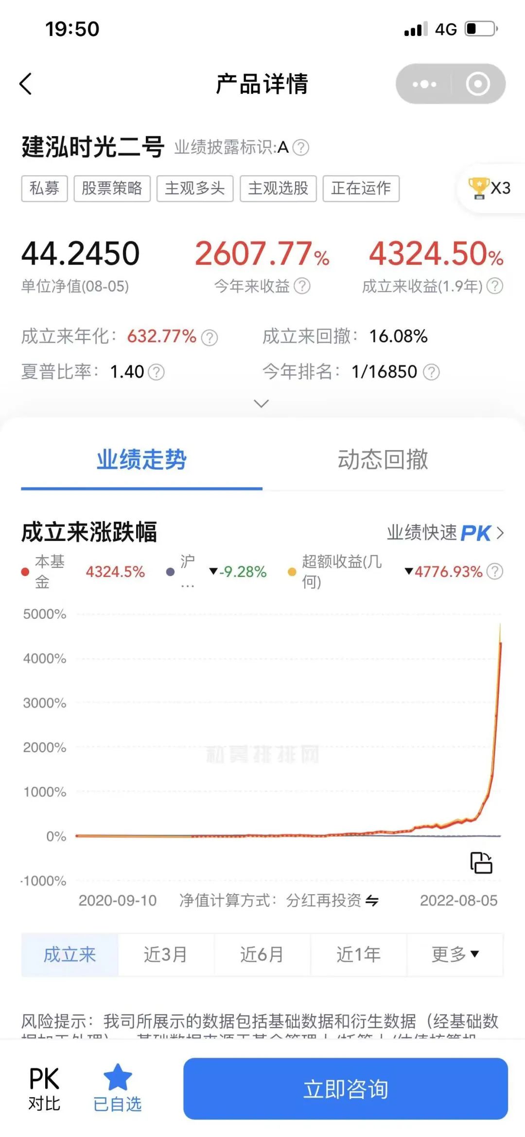 而就在此时,一家净值飙涨的私募公司,也引发了市场的关注。一家来自深圳前海的私募基金建泓时代也被市场传言关注。因为净值的暴涨幅度,让人觉得不可想象。