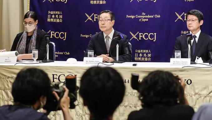 田中富广(中)10日在东京召开记者会(日经新闻图)“与友好团体密切相关是事实......但我们不采取与特定政党发展关系的态度。我曾与对共产主义有明确立场的政客合作过。从这个角度来看,我与自民党议员有过接触。”田中说。