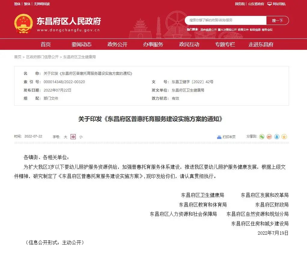 东昌府区普惠托育服务建设实施方案为扩大我区3岁以下婴幼儿照护服务资源供给,加强普惠托育服务体系建设,推进我区婴幼儿照护服务健康发展,根据《山东省人民政府办公厅关于促进3岁以下婴幼儿照护服务发展的实施意见》(鲁政办发〔2020〕9号)、《聊城市人民政府办公室关于促进3岁以下婴幼儿照护服务发展的实施意见》(聊政办发〔2020〕11号)和《东昌府区人民政府办公室关于促进3岁以下婴幼儿照护服务发展的实施意见》(东昌政办发〔2020〕14号)等文件精神,结合我区实际,制定本实施方案。