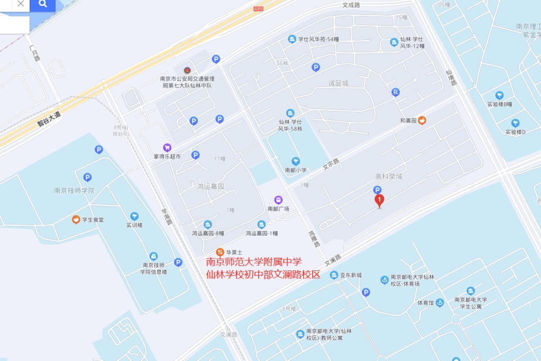 南京师范大学附属中学仙林学校初中部文澜路校区(仙鹤片区北部中学)位于大学城仙鹤片区,东至鸿雁路、南至文澜路、西至学海路、北至鸿运嘉园;