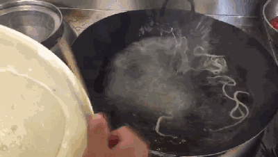 剔尖的面要和得软一些,放在一个大托盘中,制作的时候一手缓缓地转动托盘,另一手用筷子将面飞速的剔进锅中,直到把盘上的面一点点地剔光。