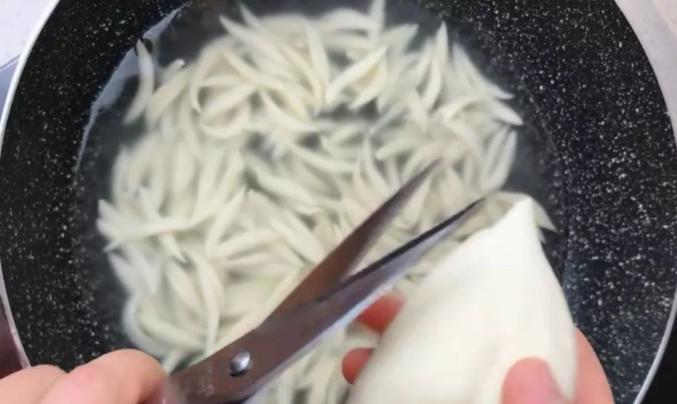 除了筷子,厨房里另一个常用工具剪刀,也是可以用来做面的。