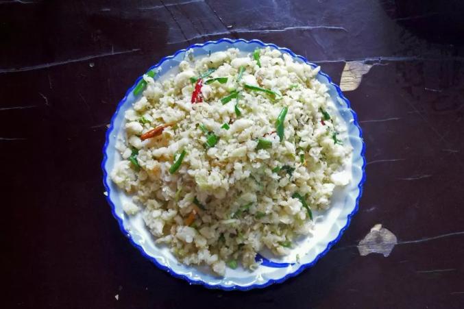 拨烂子是将土豆丝、胡萝卜丝等蔬菜抓入面粉拌匀,然后上锅蒸熟,之后再用鸡蛋炒制。可以说,是一道完美的既能当菜、又能当饭的食物了。