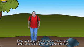 比如讲身体动作时,动画场景是一条小路,Steve在路上边走边说“walk”这个词;走着来到了水滩旁,在这个情景下自然而然就讲到了跳跃“jump”这个词。
