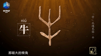 又比如,甲骨文里,这个牛角会动的“牛”字,瞬间就让字活了过来...