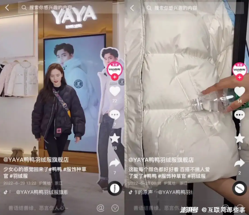 今年6月份,羽绒服品牌鸭鸭便多次与交个朋友直播间、彩虹夫妇、主持人王芳等多个直播达人合作。