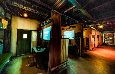 当你进入鬼屋后,你将在鬼屋中步行穿过“停尸房”、“手术室”、“医生诊室”,一面面“血淋淋”的墙壁、一条条“血痕”诉说着血腥的往事。
