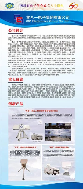 经过50多年的发展,零八一电子集团有限公司已发展成为一家集精密探测设备和配套产品的科研开发、生产试制、系统集成、技术服务于一体的企业,是我国产业链条最为完整的近程防空骨干企业之一和军工电子核心能力建设重点单位,是国家军工电子核心能力建设重点单位、近程防空火控系统科研生产服务基地、战场装甲情报侦察处理科研生产单位、陆军超低空相控阵目标指示雷达科研生产单位、航天测控和靶场测量雷达科研生产单位。