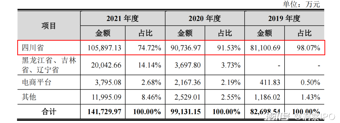 比产品结构更有局限性的,是菊乐股份的销售范围。报告期内,分别有98.07%、91.53%、74.72%的销售金额来自于四川省内。
