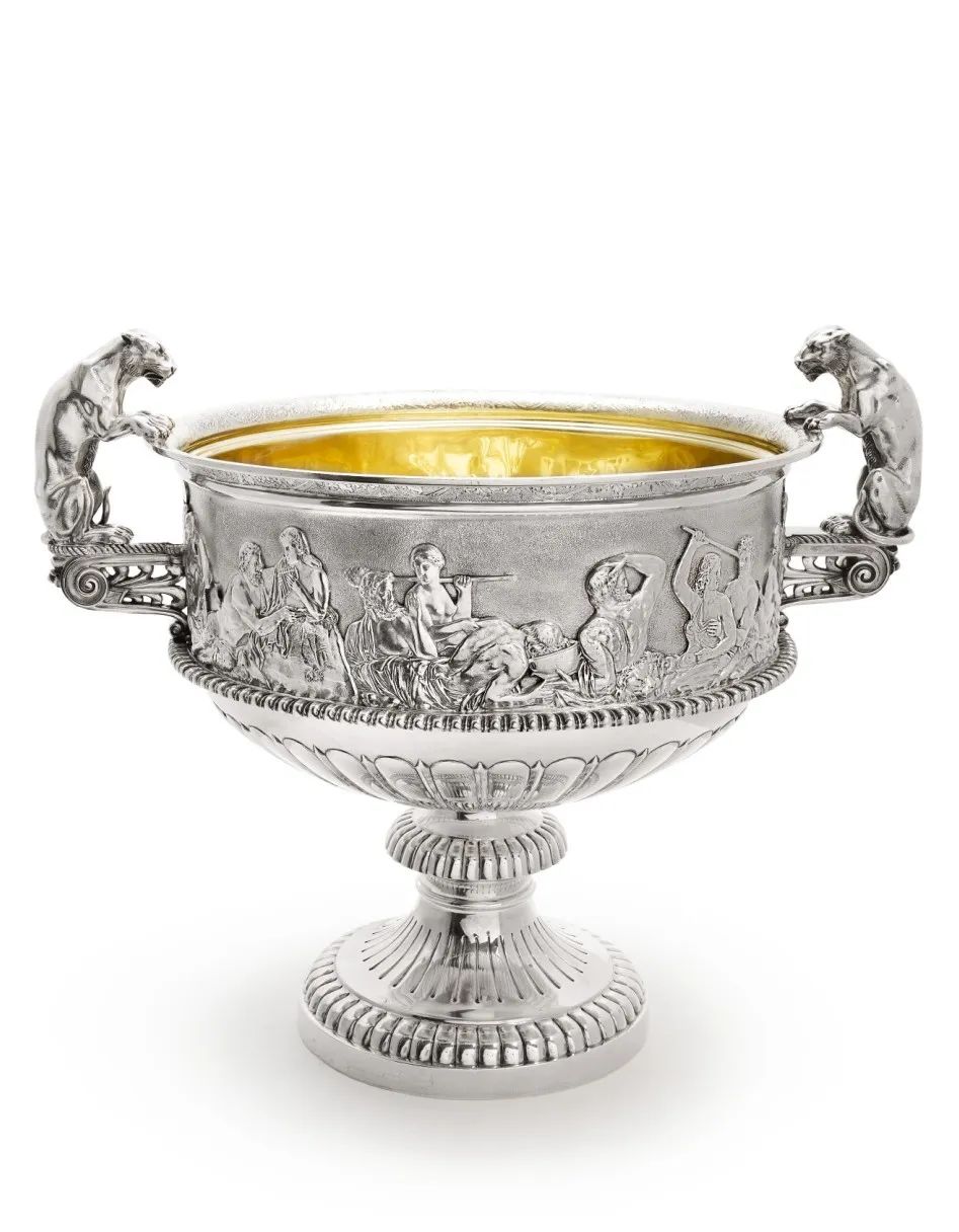 雕琢繁复、鎏金镀银的容器几乎是标配,花瓶之上,浪漫的小天使等神话主题雕刻栩栩如生,极尽富丽堂皇。