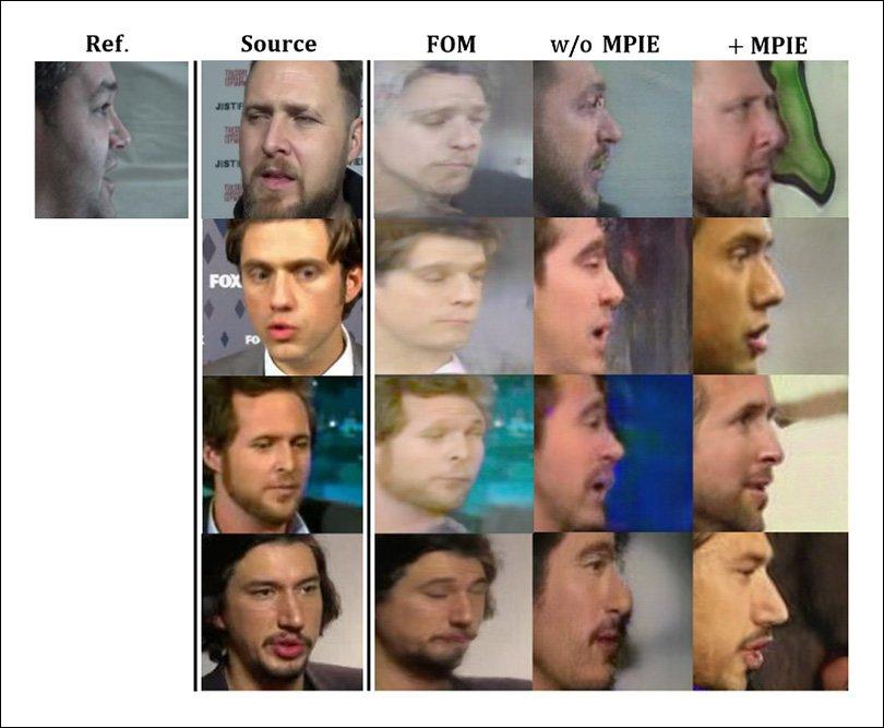 意识到训练数据的缺陷,论文《Dual-Generator Face Reenactment》的附加材料中提供了一些包含 90 度的人脸照片。