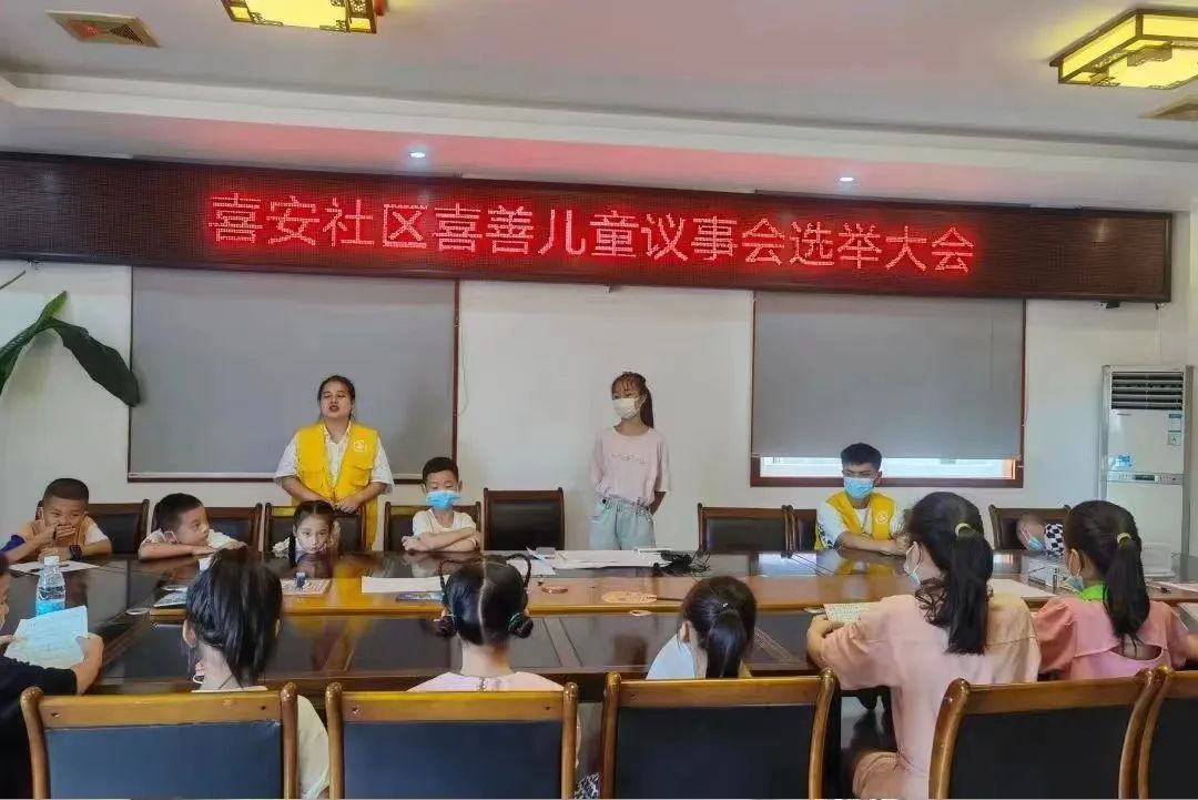 8月7日,喜安社区开展了喜安社区首届喜善儿童议事会成立仪式。儿童议事会成立之前,巾帼志愿者做足了宣传工作,争取让辖区内每一个小朋友都知晓儿童议事会,我们在小区业主群、周末课堂家长群以及公众号等地方,发布招募通知,鼓励孩子们积极参与社区事务。通过前期的宣传以及准备工作,喜安社区首届儿童议事会也在大家的期待中开展。
