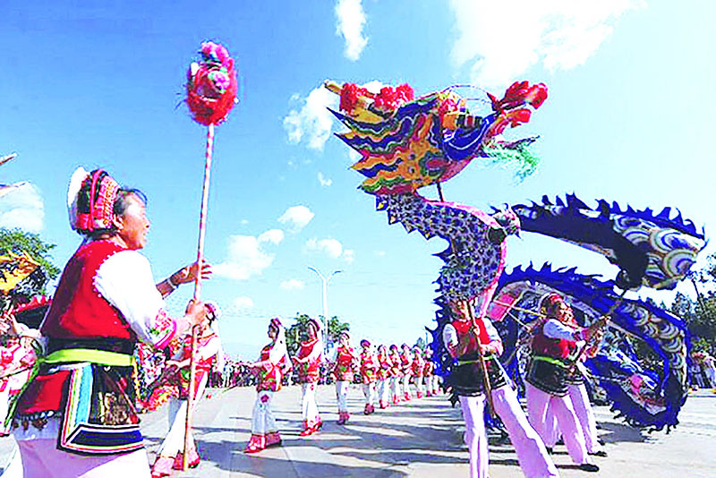 炼铁乡白族群众把耍龙称为“耍龙舞”,白族话叫“达农高”,一场龙耍下来,大家大汗淋漓,是一项高强度的民间体育运动。每年从春节到元宵,白族群众在民间艺人的指导下,齐心协力举办一场热热闹闹的耍龙欢庆佳节。经过千百年的沿袭和发展,耍龙也发生了变化,加入了现代元素,出场形式多变,已成为一种形式更活泼、表演更优美、带有浪漫色彩的民间体育舞蹈,备受广大群众的喜爱。