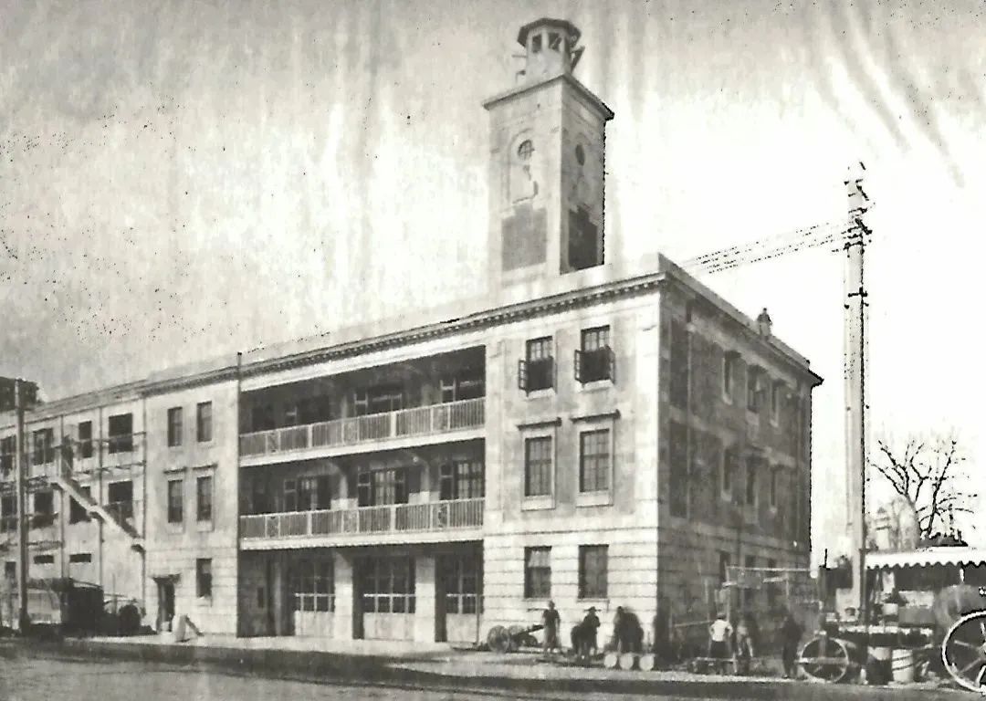1921年,工部局在杨树浦路西首(今杨树浦路1307号)购地建造了一座高31.5米的瞭望台。与瞭望台配套落成的还有一栋五开间宽的钢筋水凝土建筑,时人称之为“水龙间”,即相当于如今的消防站。在水龙间里摆放着水带、破拆工具等各种消防器材,还有消防车驻扎其中。这便是老上海人熟知的杨树浦救火会。