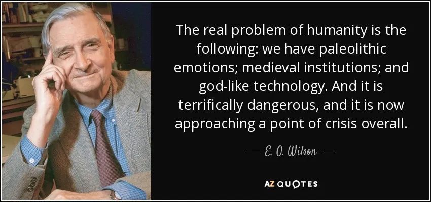 哈佛大学生物学家E·O·威尔逊(E.O.Wilson)有一句名言:人性最大的问题是,我们拥有旧石器时代的情绪、中世纪的机构和制度,和如上帝般的科技。尽管科技日新月异,但人类对社会的想象还是乏善可陈,而更难突破的则是人性的懒惰。无论我们用的是刀剑还是原子弹,人和人之间总是追名逐利、睚眦必报,尽管更有益的做法——沟通合作、善用工具等等——就摆在眼前。过去我一直不明白,为什么人性无法像科技那样更新换代。此刻,想到我的孩子多少会继承我身体上的缺憾,很可能像我一样尽量自制又忍不住偷懒、梦想远大又难免有点狂妄,我发现,总有弱点是我想竭力改正,最终却会在不经意间传承下去的。