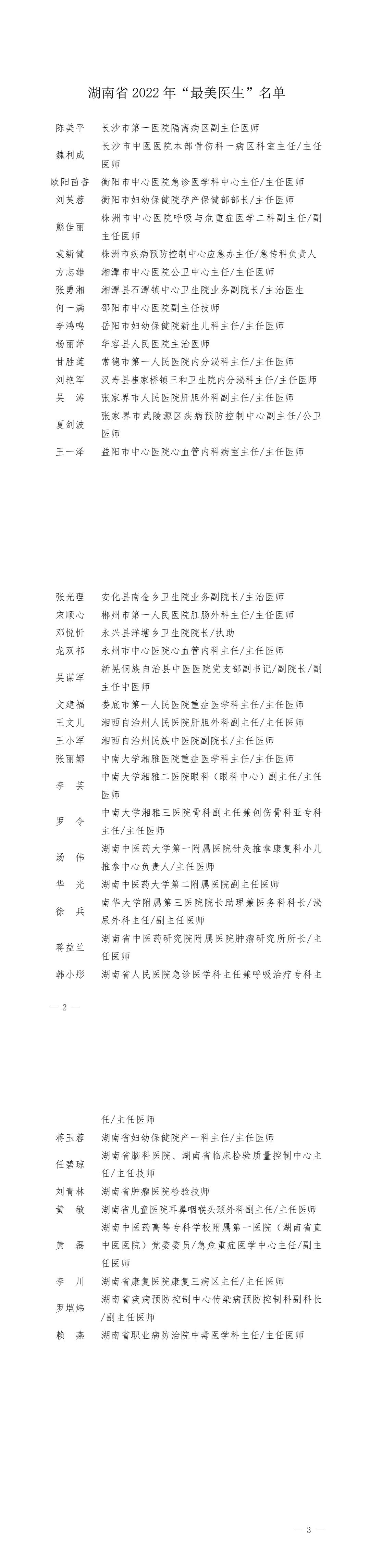 2022年8月19日是第五个中国医师节,今年的节日主题是“‘医’心向党、踔厉奋进”。省委宣传部、省卫生健康委联合主办了湖南省2022年“最美医生”推选活动。8月18日上午,湖南省2022年“最美医生”名单正式公布,中南大学湘雅医院张丽娜等40名医生光荣获评。
