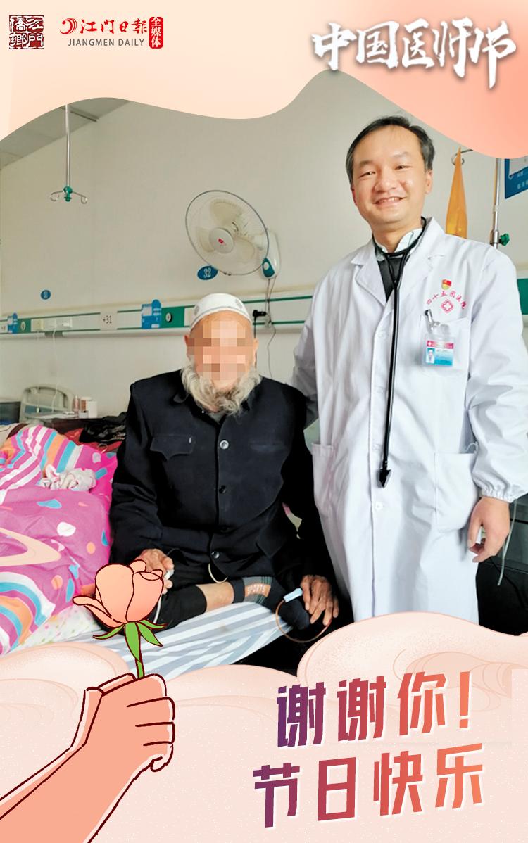 江门市第三人民医院主任医师吕卓江,在新疆生产建设兵团第三师45团医院开展为期半年的医疗援疆工作。当地患者经过其悉心治疗后,得以康复出院,露出了开心的笑容。