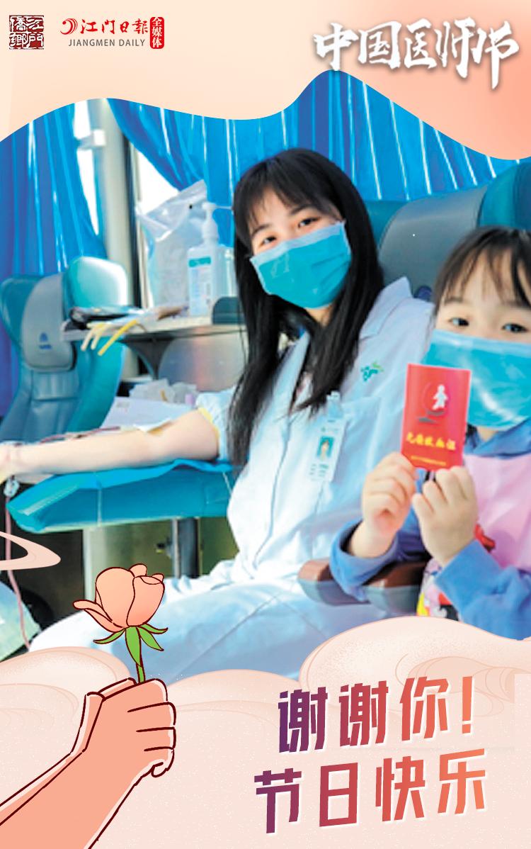 身教胜于言传。江门市人民医院输血科党员医生黄叠稜,工作之余积极参与无偿献血,也给现场的女儿送上了最好的礼物——一颗温暖的爱心。