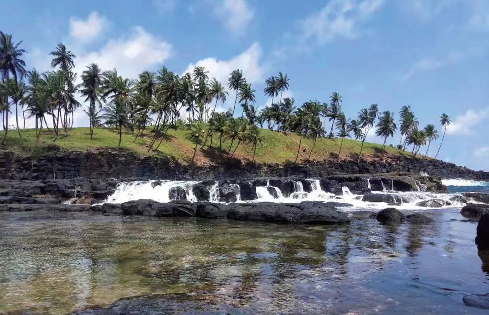 圣多美和普林西比民主共和国(The Democratic Republic of Sao Tome and Principe),简称“圣普”,位于西非几内亚湾内。东与加蓬、东北与赤道几内亚隔海相望,距离加蓬约400千米,距离赤道几内亚约225千米,由14个岛屿组成,面积约为1001平方千米。岛上山峰林立,地表被原始森林覆盖,一片翠绿,故有“绿岛”之美称。较大的两个岛是圣多美岛和普林西比岛。两岛中央是崇山峻岭,周边是悬崖峭壁,沿海是平原。最高峰圣多美峰海拔为2004米,次高峰普林西比峰海拔为948米。两岛各有河流十几条,都发源于中部高山,形成飞瀑,呈放射状,直泻而下,汇成洪流,奔腾入海。圣普为赤道国家,属热带雨林气候,光照充足,雨量充沛,终年湿热。一年分三季,1~5月为大雨季,6~9月为旱季,10~12月为小雨季。年均气温为25℃,特别适合热带植物生长,如甘蔗、椰子、咖啡和可可生长茂盛。
