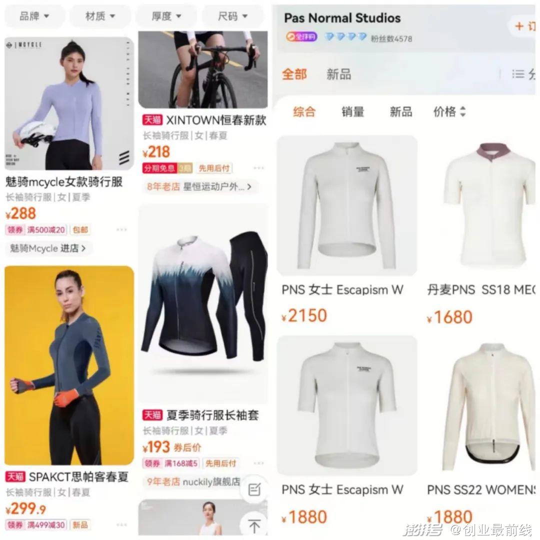 (图 / 左图为骑行服国产品牌,右图为国际品牌PNS)