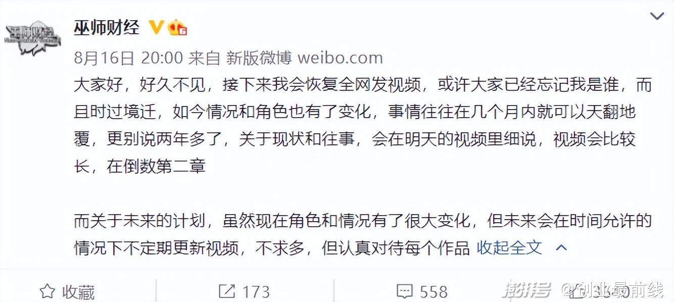 如今,“巫师财经”发布的“恢复全网发视频”公告,更像是对两年前决定的否定。