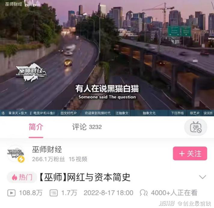 如今,宣布回归全平台的“巫师财经”也没有迎来“翻红”,B站数据显示,“巫师财经”8月17日最新一期视频播放量为108.8万(数据截至2022年8月19日上午)。