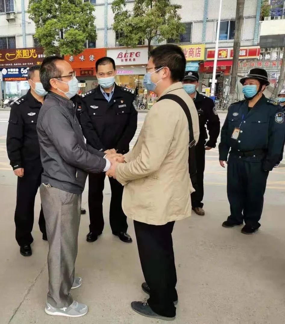 伍于铭老师(前排左)接受广东省公安厅领导慰问 受访者供图