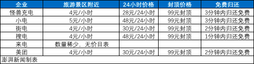 竹芒科技(旗下有街电、搜电两品牌)方面人士则回应澎湃新闻记者:“近一年来肯定是没有涨过价的,共享充电宝价格是根据各地区场景去定价。如果消费者在四五线使用充电宝肯定没有一线城市贵。同样的,如果你在一个高价格门票的景区里使用充电宝,也会比路边小店贵。”