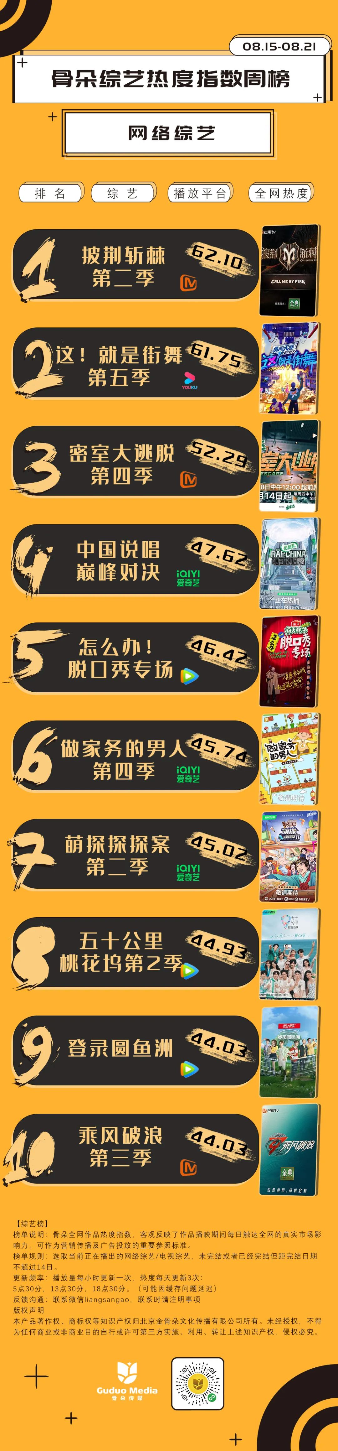 8月15日-8月21日网综周榜数据解读: