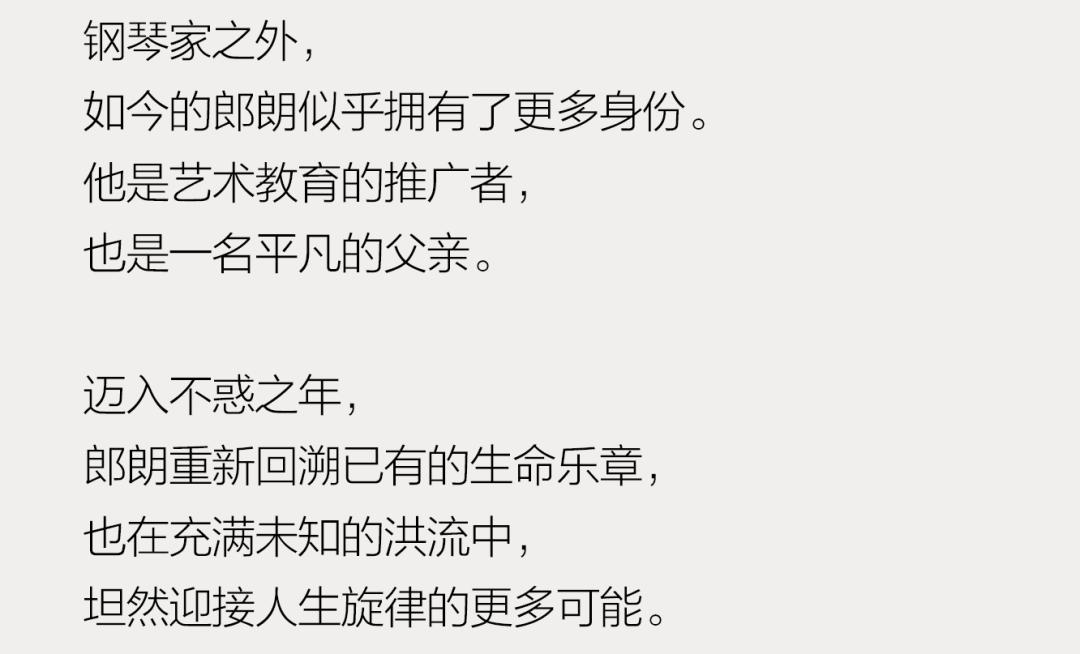 “我走到哪儿都会带上儿子,孩子成长每个阶段变化太大了,我不想错过。”在孩子出生前,郎朗有三个月时间暂停了所有工作。如果说对人生有什么反思,郎朗从自己的父母那里总结出的不是严苛,而是陪伴。即便是不得不离家,郎朗也一定和妻儿视频连线,这在他看来是至关重要的事。“有了孩子,很多事都不一样了。孩子也是我的旋律。”