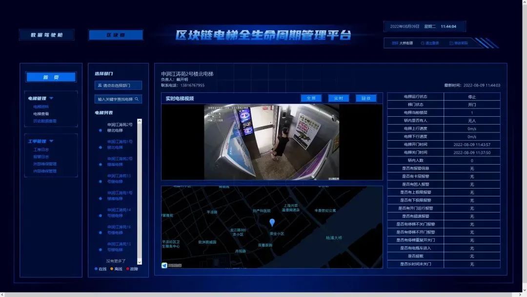 分类显示地理位置、设备名称、故障类型……在区块链电梯运维项目后台,记者观摩了试点小区之一——申润江涛苑小区的电梯运维模式。通过电梯传感器远程传回的数据,后台精准分析后,就能即时对电瓶车入电梯等危险情况联动街道城运中心实施报警,同时还兼具统计人流量、电梯故障、超载次数等功能,就像一名为电梯精准把脉的“全科医生”。