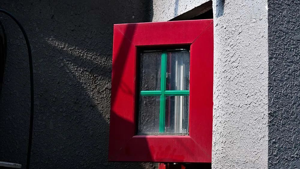胡同里的小红窗,在灰色的墙上格外醒目,正好下午的阳光将墙面“刷”出了几个层次的灰色,让整个画面看着并不单薄,在构图时我还裁切掉了周围杂乱的电线,让窗户更加突出。