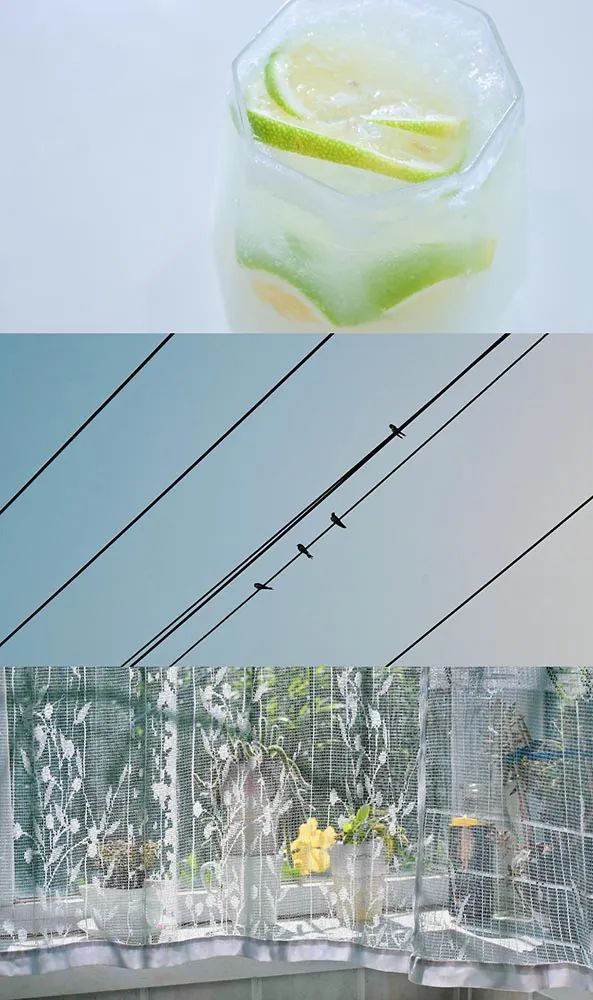 除了通过光影、色彩、主体等要素去拆分出碎片的画面,我们还可以从简约的画面入手。例如常见的电缆,好像天空中的五线谱,还有变幻莫测的白云以及夏日冷饮等,其实都可以作为简约小品被记录下来,后期也可以作为电影感拼图的素材。