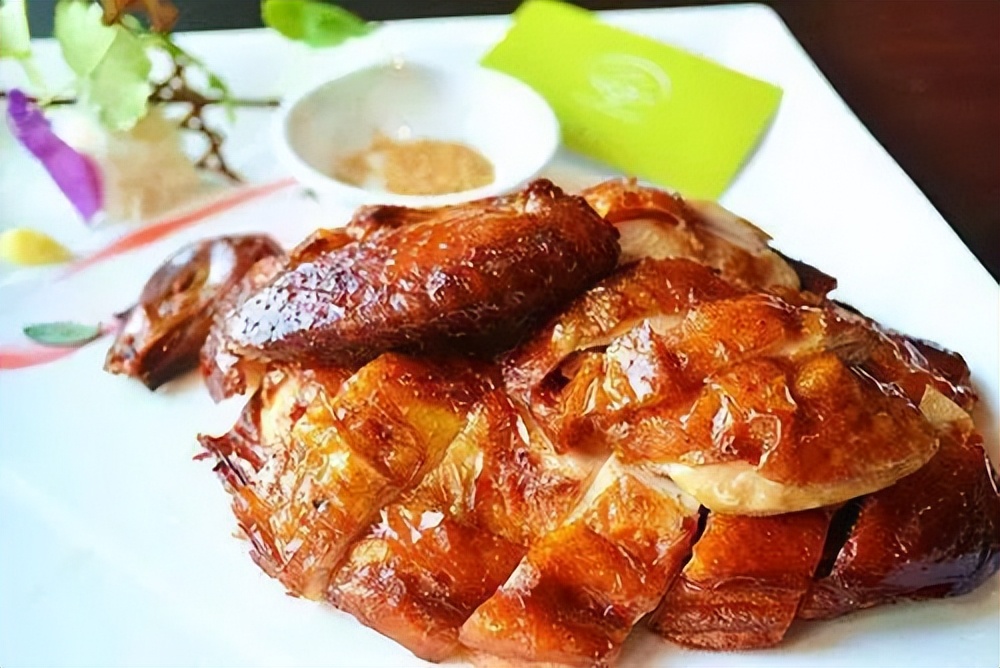 一整只烧鸡,体形肥大、色泽金黄、形色相当美观,吃到嘴里更是酥香软烂、咸淡适口。
