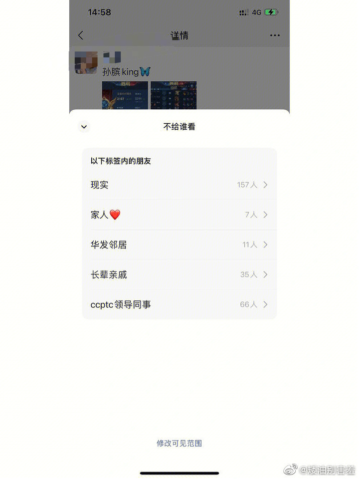 近日,有网友发现苹果用户的微信朋友圈可以修改可见范围了。