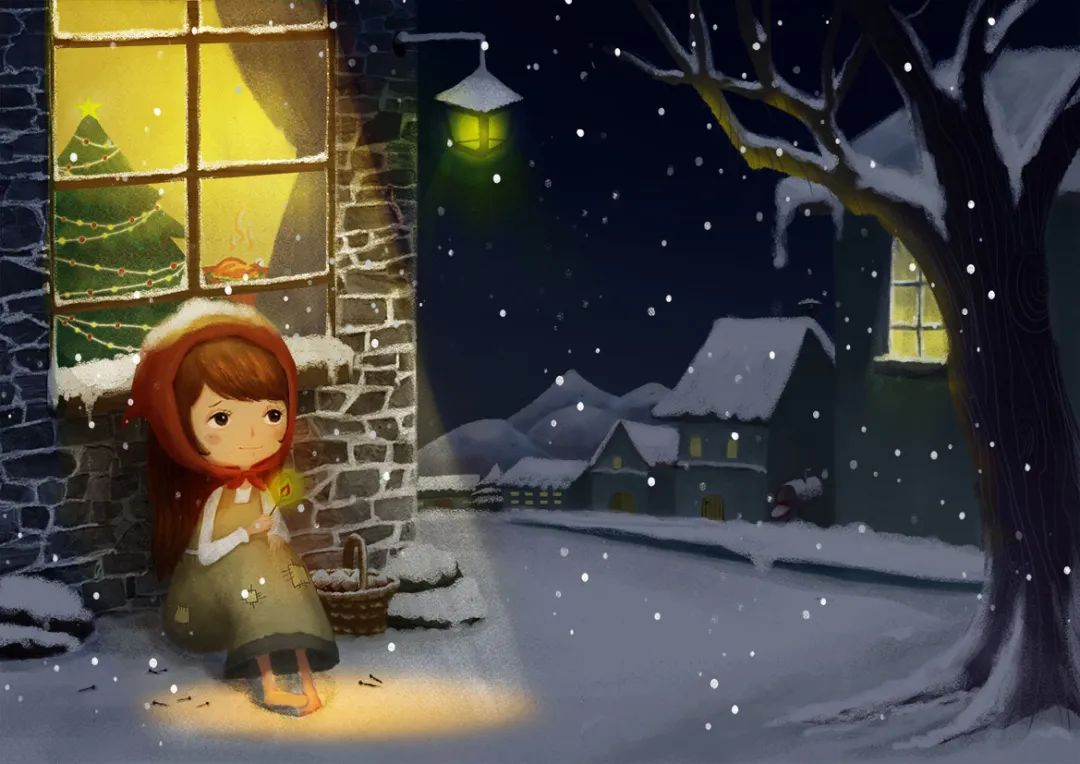 “天气冷得可怕。正在下雪,黑暗的夜幕开始垂下来了。这是这年最后的一夜——新年的前夕。在这样的寒冷和黑暗中,有一个光头赤脚的小女孩正在街上走着,但那又有什么用呢?那是一双非常大的拖鞋......”