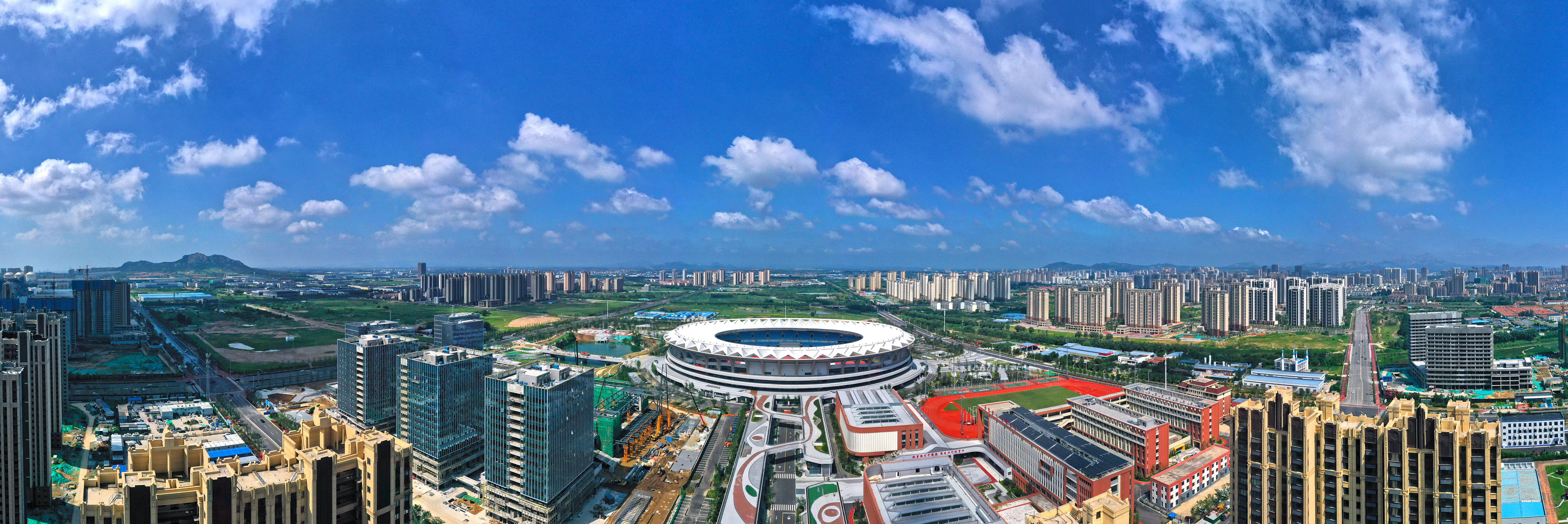 这就是山东省第二十五届运动会主会场——日照奎山体育中心。规划建设日照之光体育场、日照市体育运动学校、运动员培训训练基地及体育运动公园的日照奎山体育中心,承担开幕式及田径、滑板、橄榄球等项目,是一处集大型体育赛事、商业运营、体育教育及全民健身为一体的体育综合体。