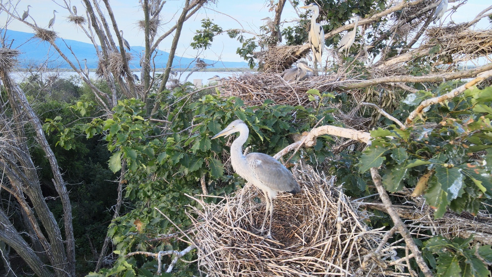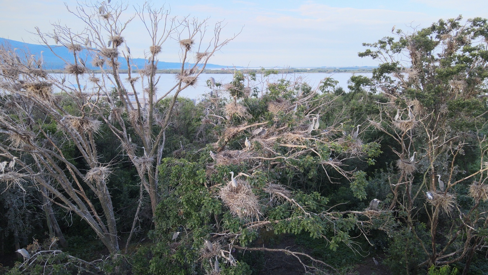 在青龙水道与抚远水道交汇的一个无名小岛,常年栖息着数以万计的苍鹭,拍鸟达人阿修为其命名“鸟岛”。记者一行靠近鸟岛,远远看见苍鹭在树梢上盘旋、起落。近距离观察,发现在一棵大树上竟然有43个大鸟巢,枝头站满了苍鹭。