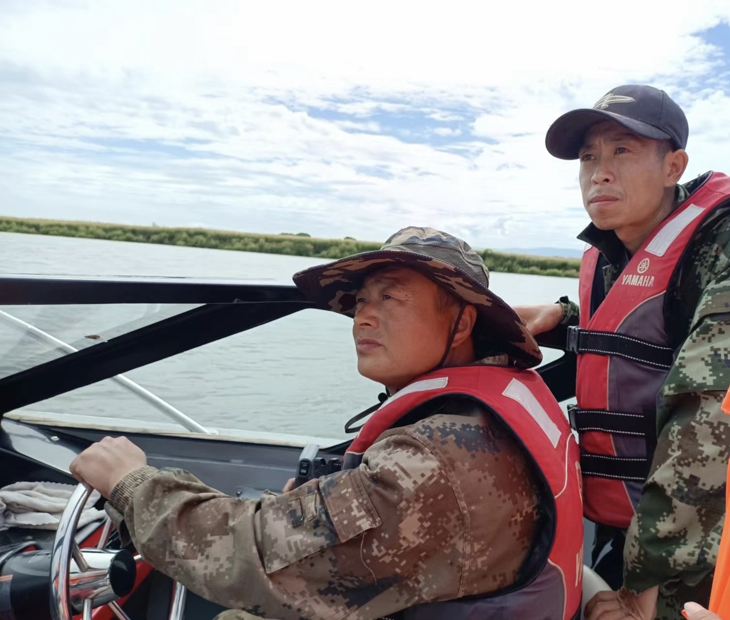 管护员们的苦乐与酸甜,在记者随同巡护中得到了深度体验。烈日炙烤,蚊虫叮咬,强烈的紫外线似乎要穿透皮肤。游弋于水道之上,穿梭于岛屿之间,船头有鸟带路,船尾有鱼“断后”。巡逻快艇劈波斩浪,勇往直前。