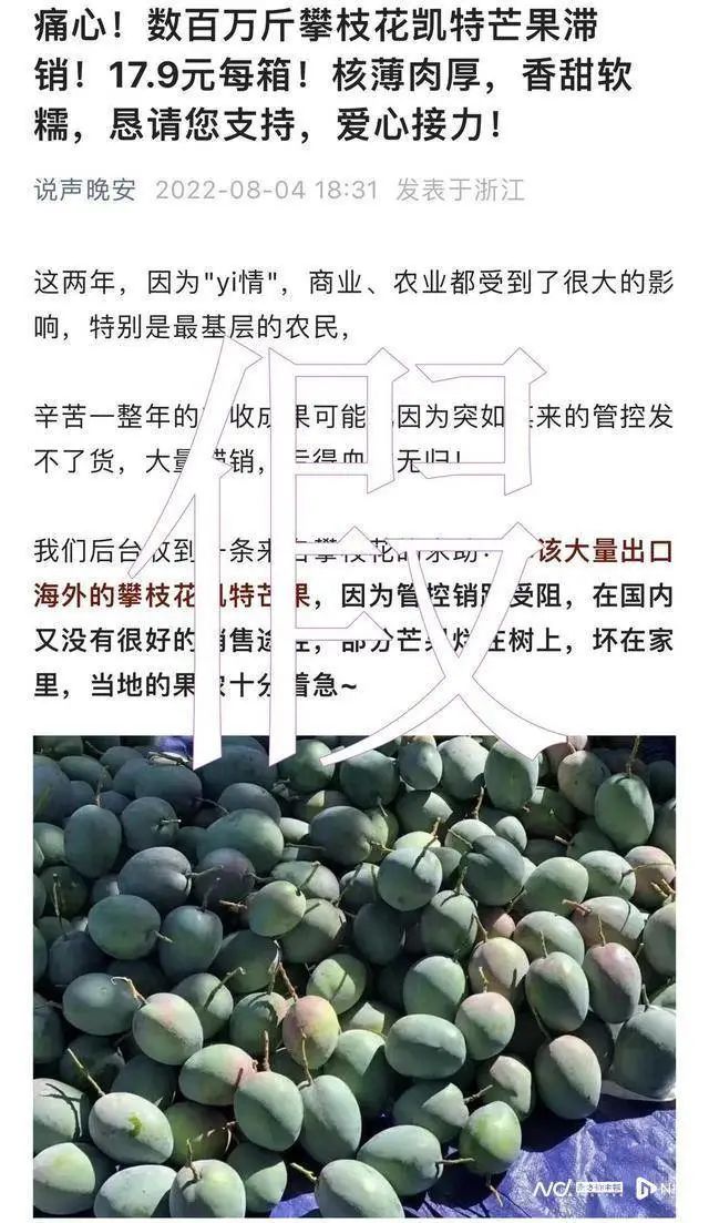 就有公众号曝出芒果“大量滞销”