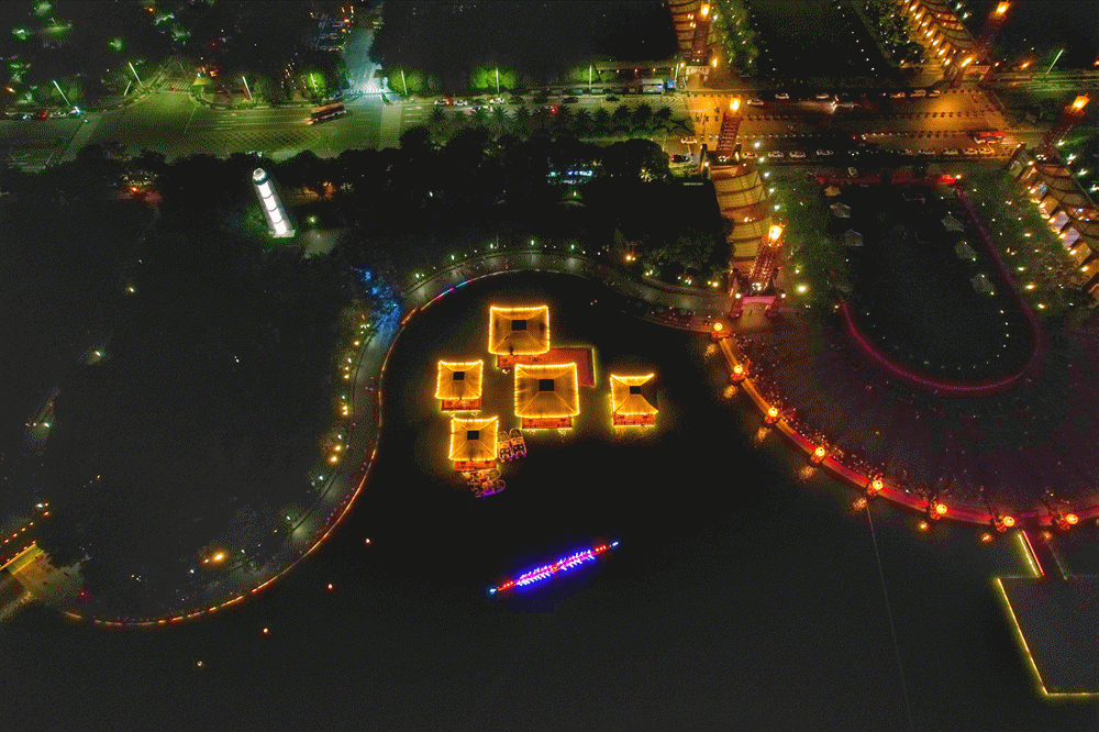 夜光龙狮闹灯湖。(穿行者、宋兹檀 摄)