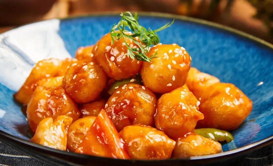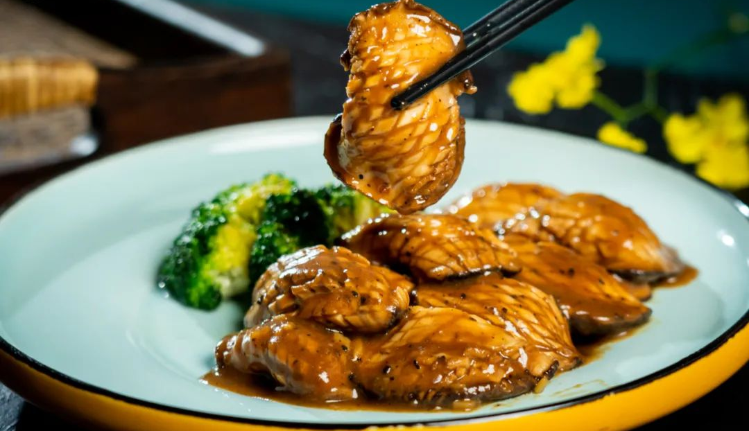 爽滑嫩的招牌“黑椒扣鲍片”、由豆制品制成的“菠萝咕噜肉”……每一款都口感丰富,色香味俱全。