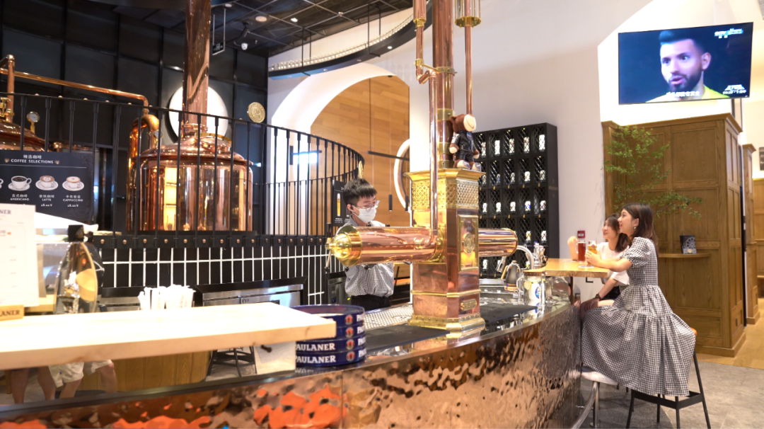 餐厅引入德国专业酿酒设备,打造出淡啤酒、黑啤酒、小麦啤三款招牌爆款,