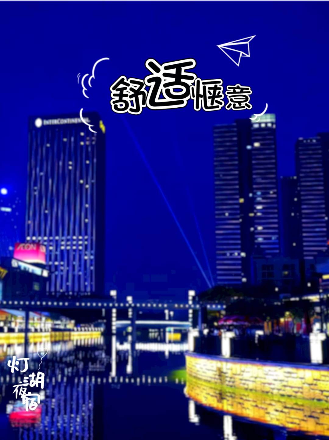 夜幕降临,千灯湖亮千灯,灯映湖水水映灯。