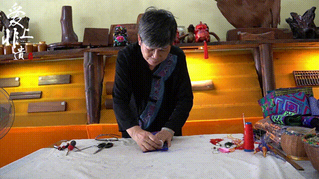 给麽乜香囊加入挂坠。李彬华 摄制缝合好后,通常还会给麽乜加上中国结或流苏等配饰。至此,一个麽乜香囊制作完成。