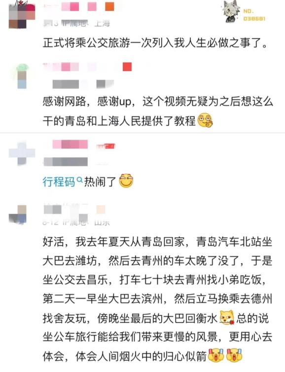 还有不少人提出,现在许多人的旅游方式是直接飞到目的地,前往网红地打卡拍照,目的性太强,少了很多乐趣。乘坐公共交通,特别是城乡公交车,更有生活气息,也会更加惬意。