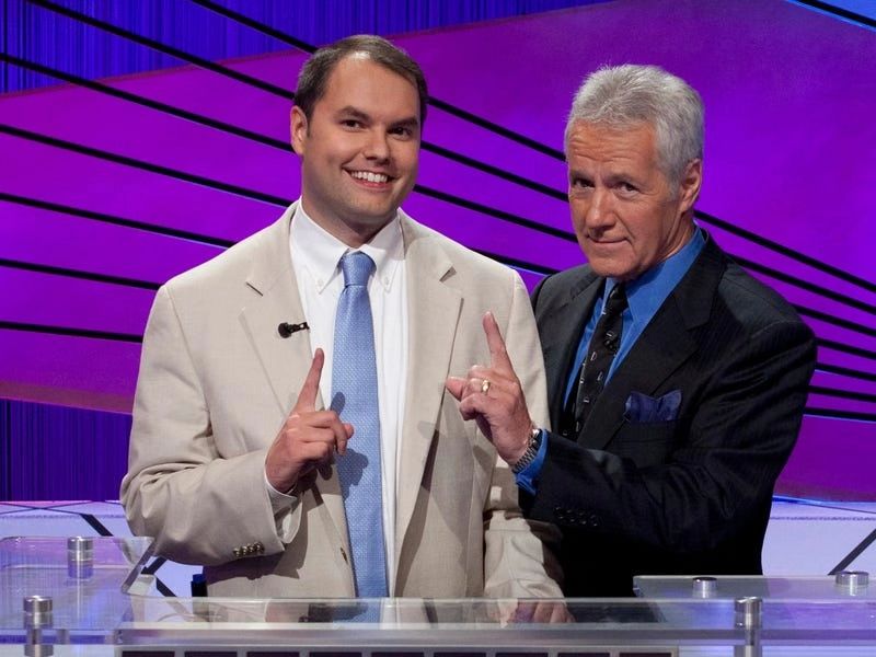 Roger Craig(左)在 Jeopardy 夺冠 | Carol Kaelson间隔重复有不少明显的优势。第一,高效。它让储存大量的卡片成为可能。第二,间隔重复利用了遗忘曲线。1880 年,赫尔曼·艾宾浩斯(Hermann Ebbinghaus)发现了遗忘的规律,当时,他在自己身上试验遗忘他背诵过的无意义音节需要多久。他发现自己在背诵音节过后几分钟、几小时、几天内就会迅速地忘掉背下的东西。于是,他总结出遗忘是一种像指数性衰变一样的自然规律。