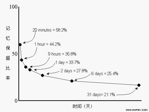 德国心理学家艾宾浩斯 ( H.Ebbinghaus )研究发现的遗忘曲线,描述了人类大脑对新事物遗忘的规律。| WHPSY6. 其他学习策略